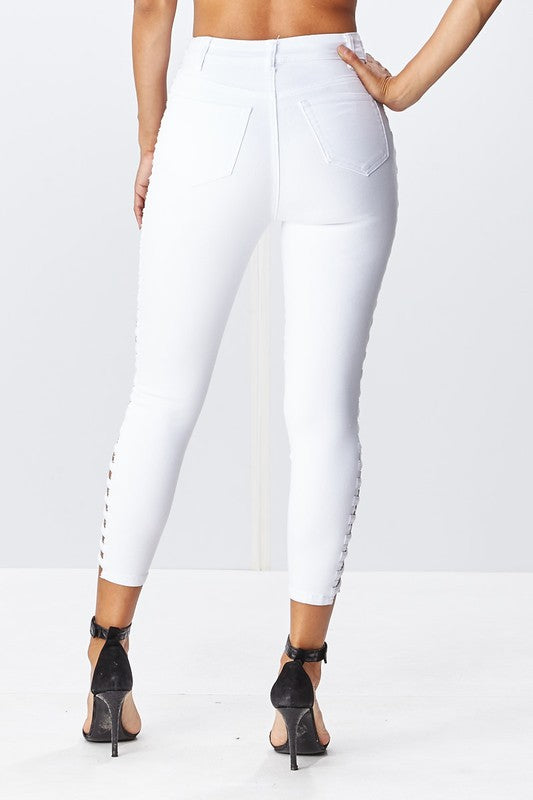The Diamond Boutique offers a wide variety of women's bottoms, including denim jeans, flare pants, skinny jeans, and trendy styles like fringe and ruched. We have options to suit every taste and occasion.