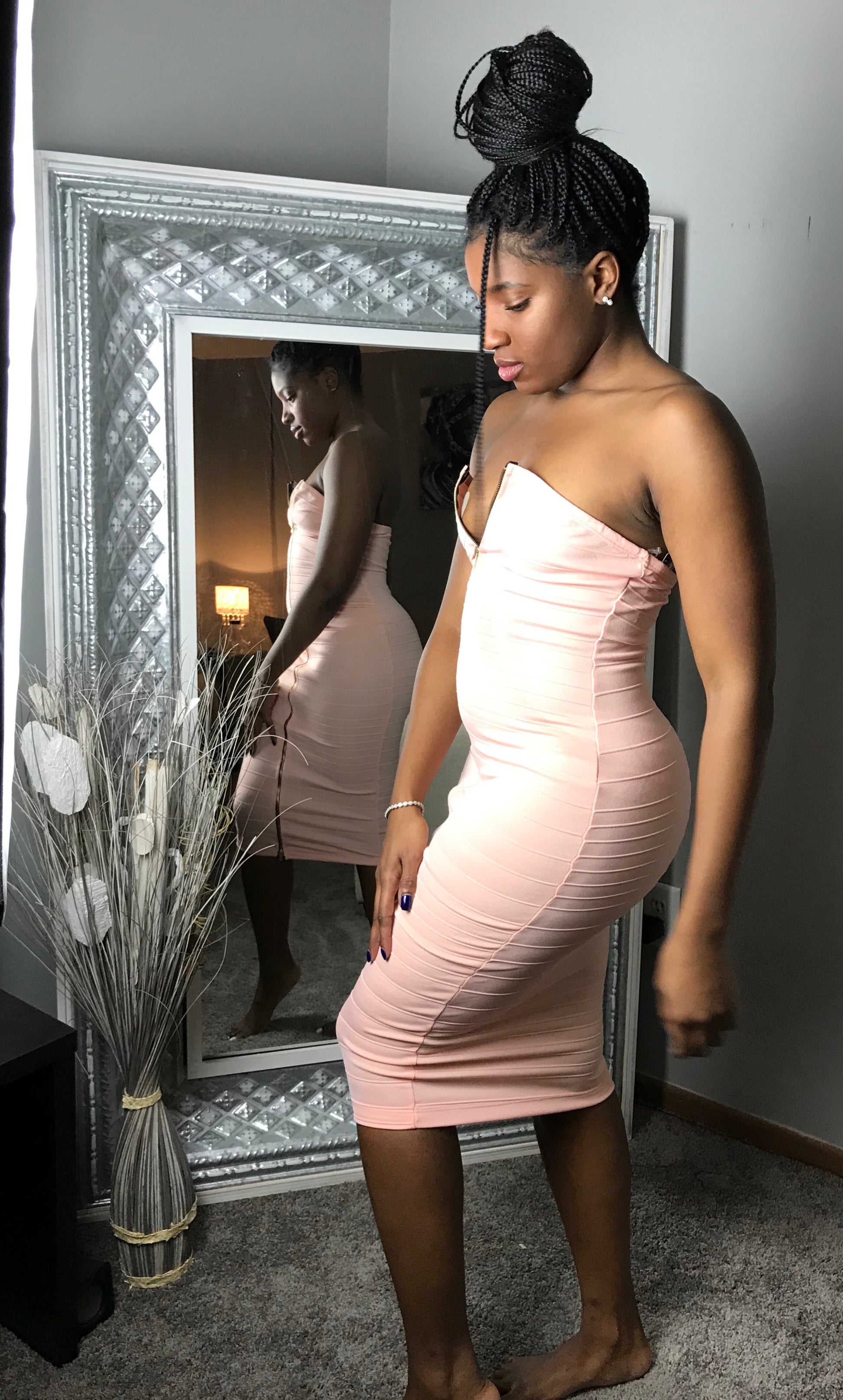 This textured strapless bodycon dress features an active zipper for closure and alot of stretch
