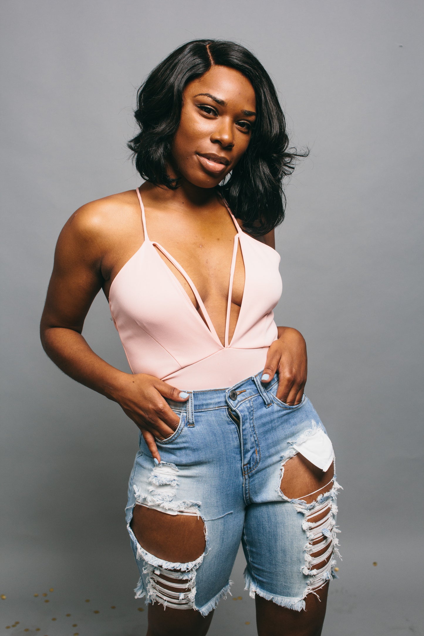 These distressed denim shorts are perfect for any summer occasion. They provide an ultra stretch and tummy control to help you flaunt your favorite curves.
